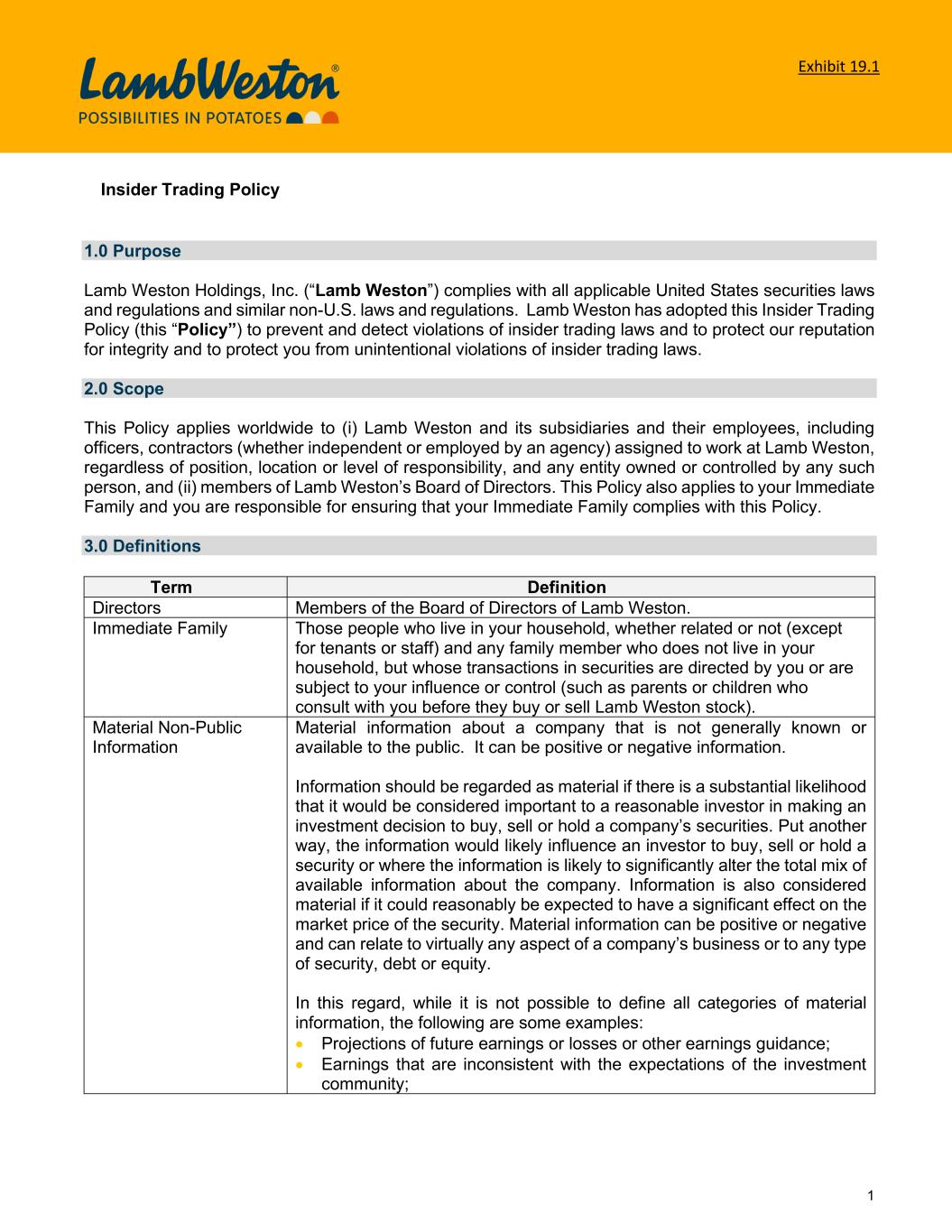 | LAMB WESTON HOLDINGS, INC. |
