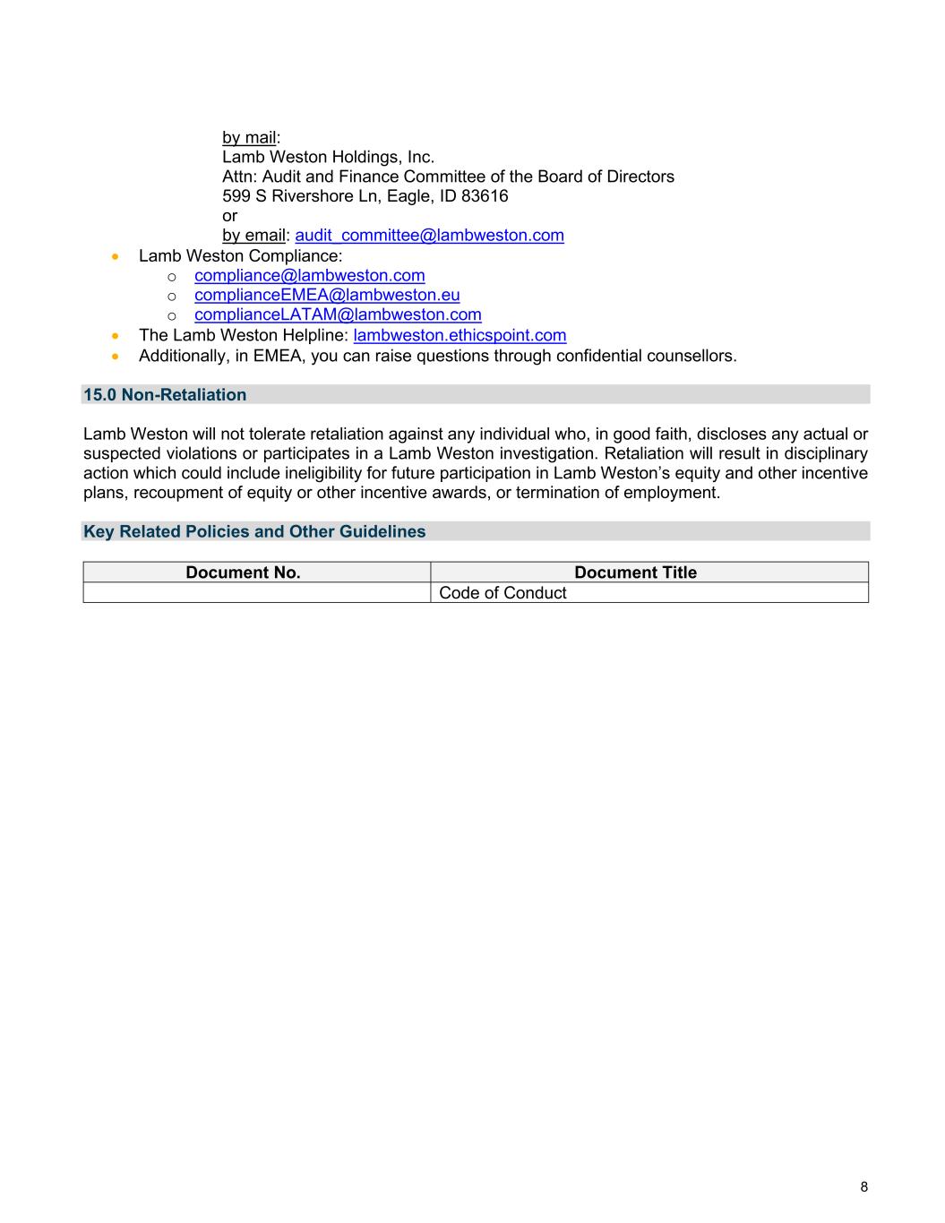 LAMB WESTON HOLDINGS, INC.